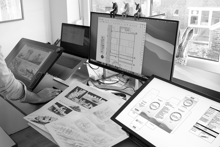 Fondé en 2017, notre studio est actuellement composé de trois personnes de talents et d’horizons différents.